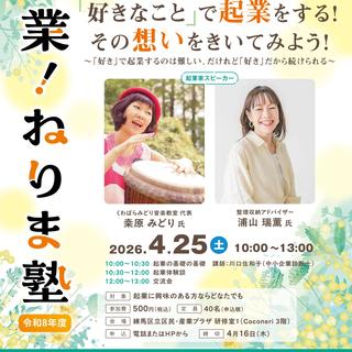 当日は、 実際に起業セミナーを受講し、現在練馬区内で「音楽教室」と「整理収納アドバイザー」としてご活躍中の起業家の方をお招きし、これまでの起業のご経験や歩みについてお話しいただきます。
